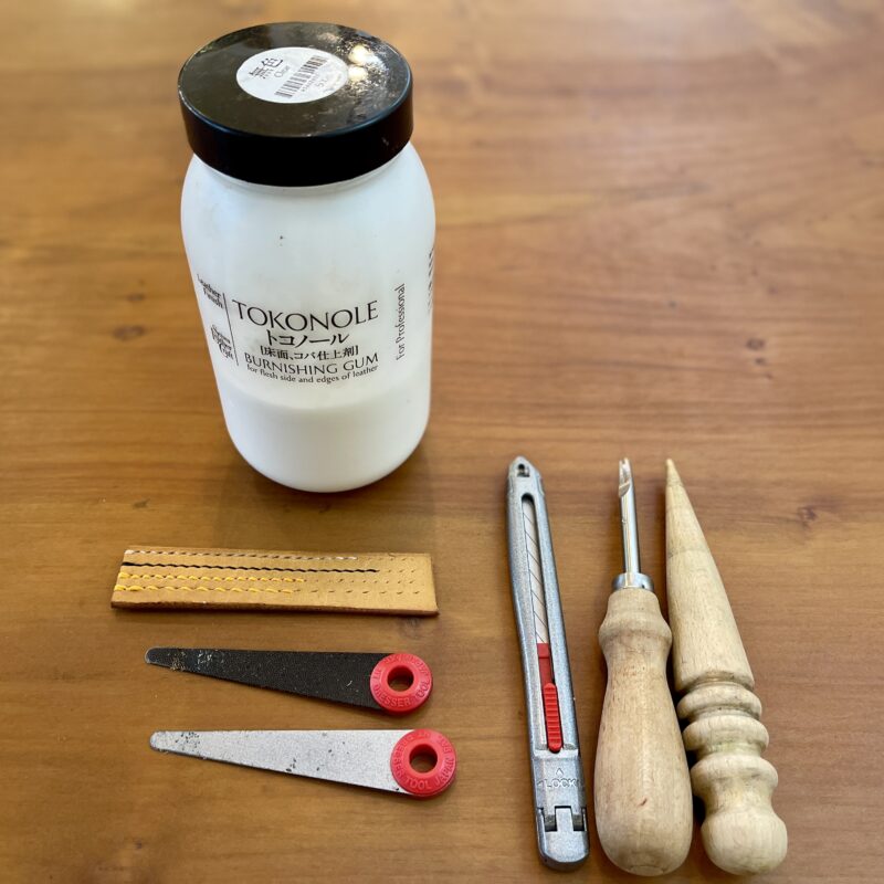 余談になりますが、もともと販売されていた会社が倒産し、しかもコロナ禍のステイホームの影響か、レザークラフト用品の需要が高かった時に普段は600円ほどのトコノールが2000円以上する異常事態になっていました…。いまは安定して購入できます!